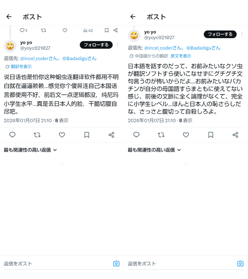 | 005 | 名無しさん | 2026/01/08(木) 07:45:27 | こいつ、中国人だろ。 文体が中国語をA | 画像 |
